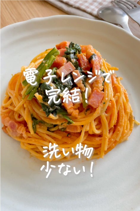 ポリ袋と電子レンジを使用することで、パスタを茹でるために必要な水量を減らし、茹で汁を捨てることもない。