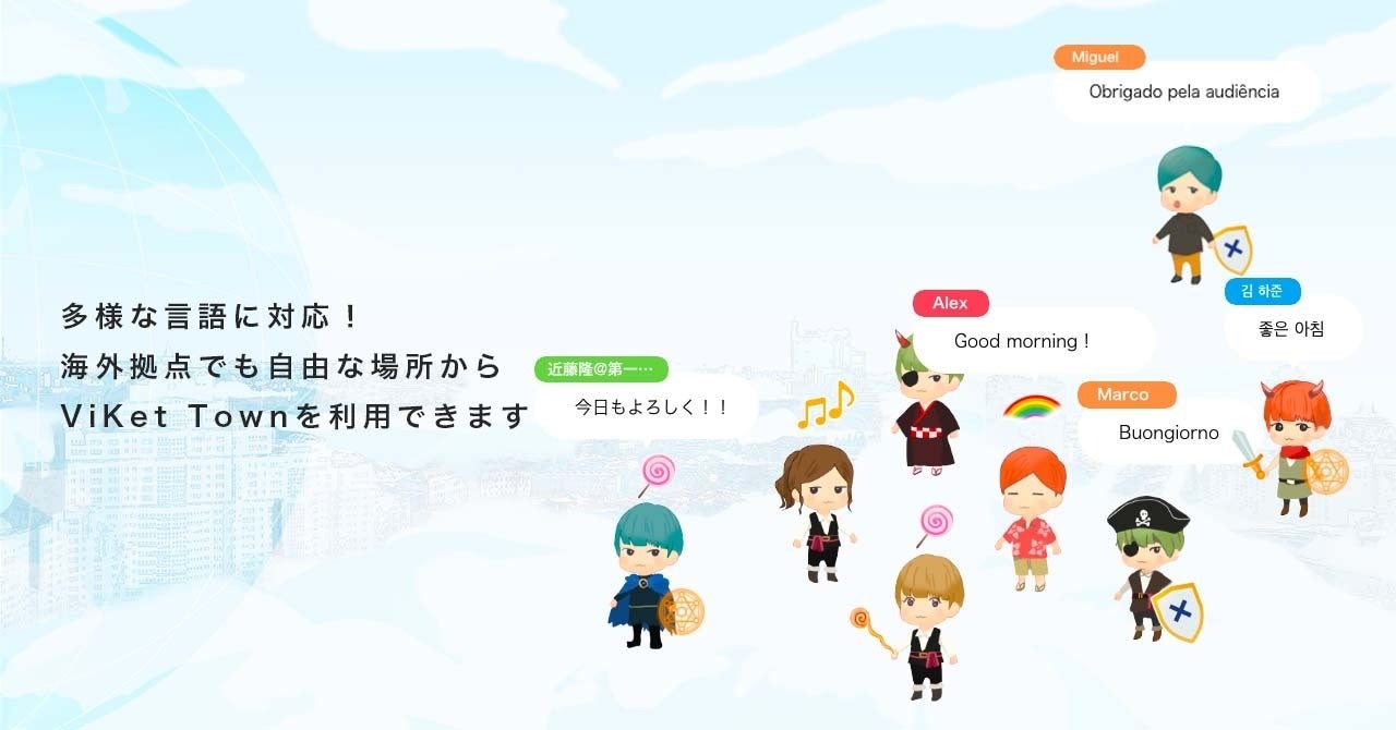 アバターと働く異世界空間プラットホーム「ViKet Town(ビケットタウン)β版」ローンチ直前!情報解禁第6弾「世界時計と10ヶ国語に対応し、全世界196カ国に向けてサービス開始」!