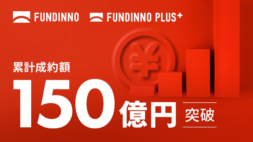 株式会社FUNDINNO(本社:東京都港区、代表:柴原 祐喜/大浦 学、以下「当社」)は、株式投資型クラウドファンディング「FUNDINNO(以下、ファンディーノ)」および、特定投資家※1からの直接投資を可能にするサービス「FUNDINNO PLUS+(以下、ファンディーノプラス)」において、累計成約額が150億円を突破したことをお知らせします。