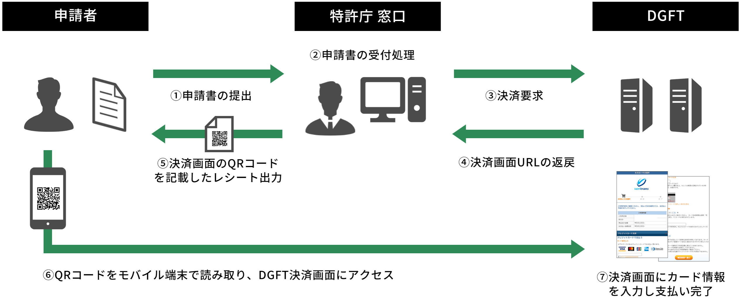 特許庁は、申請者の利便性向上と出願処理にかかるコスト削減を目的に、1984年から行政事務のデジタル化を図る「ペーパーレス計画」に着手し、1990年に世界初となるオンラインでの特許出願を実現*2するなど、各省庁に先駆けてデジタル化を推進してきました。2019年にはインターネット出願ソフトによるオンライン出願の手数料納付方法としてクレジットカードを追加し、DGFTのクレジットカード決済サービスを採用しています。