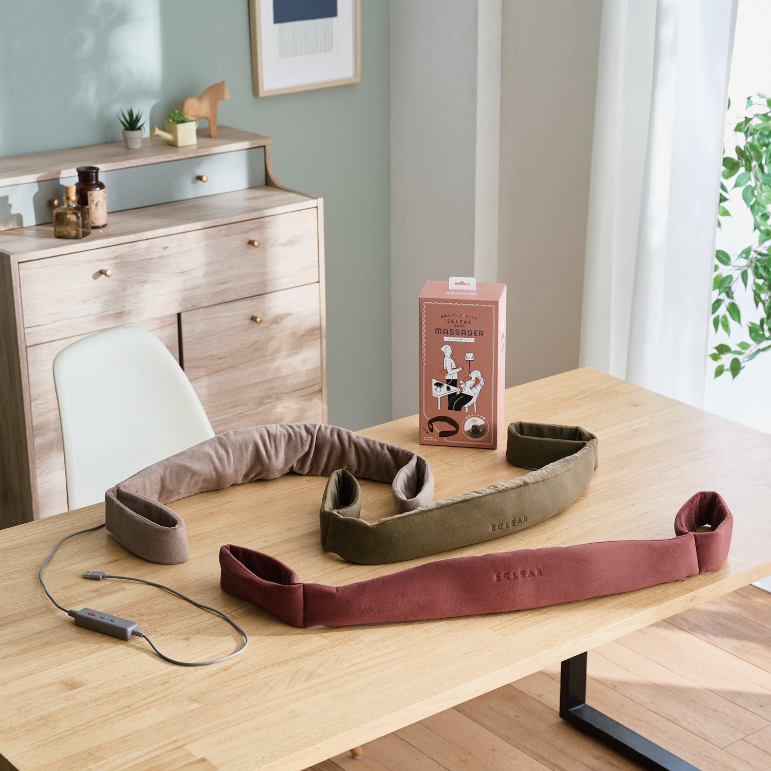 リモートワークの導入などで自宅にいる機会が増えたため、今まで以上にカラダを動かす場面が減り、ストレスや疲労が溜まりやすくなっています。仕事の合間に、休憩中に、運動後に、お風呂上がりに、リラックスタイムに。その時の気分で自宅にいながら、いつでもどこでも気軽にマッサージができるアイテムが“ECLEAR warm マッサージャー”です。