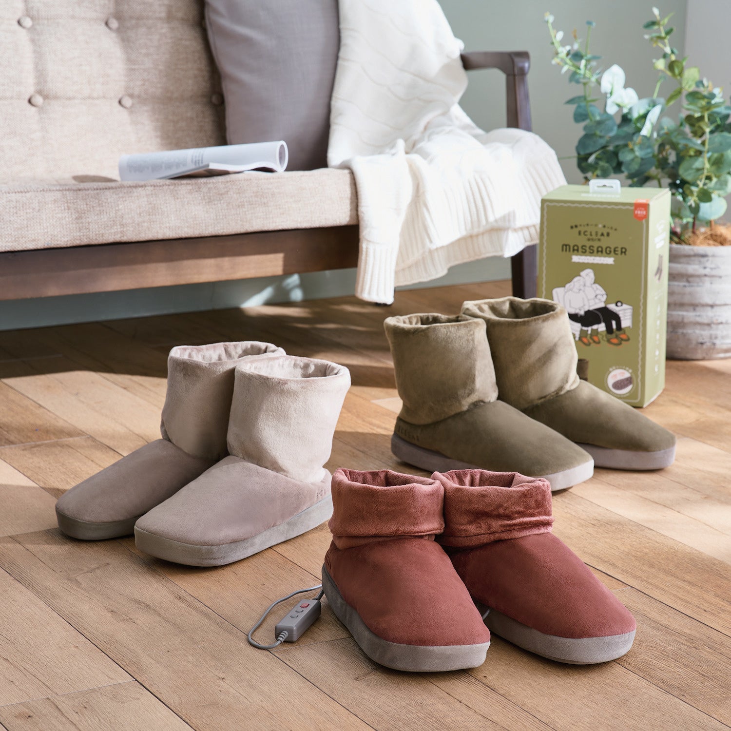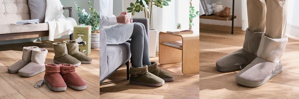 “フットマッサージャー”はブーツタイプで、凹凸のあるヒーター付きの指圧シートが足裏をぐいっとマッサージします。読書などを楽しみながら足元から体をケアできます。