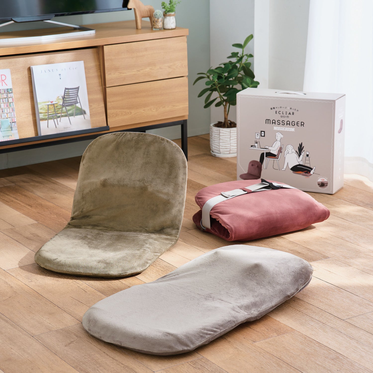 “シートマッサージャー”は、中央で折り曲げてイスに乗せたり、フラットにして床に敷いたりできるシートタイプです。振動を伝える指圧ボールは位置調整が可能で、デスクワークをしながら、床に座ってくつろぎながら、気になる箇所をマッサージできます。