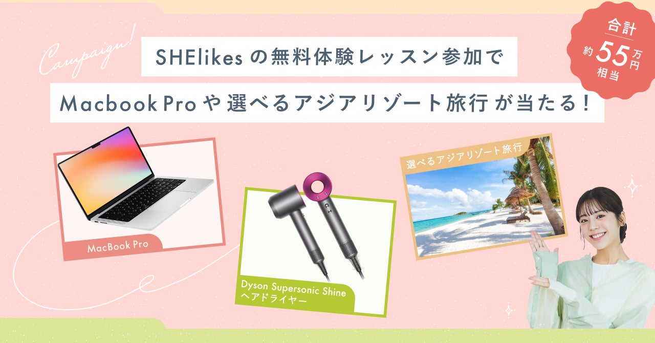 SHElikesは、時間や場所にとらわれずに働ける45以上の職種スキルが定額学び放題の女性向けキャリアスクールです。Webデザイン・Webマーケティング・ライティングなどパソコン一つで働けるデジタルスキルやクリエイティブスキルを学ぶことで、私らしい働き方の実現を支援します。パソコンやスマートフォンなどオンラインで視聴できるコース動画、コーチングやティーチング、同じ目標や趣味嗜好で集まれるコミュニティをはじめとした学び続けられる手厚いサポート、SHElikes内で挑戦できるお仕事案件など、学びをすぐに仕事として生かすことができるのが特徴です。レッスンやコーチング、課題の提出やサポートはオンラインで実施するため、好きな時間や空いた時間でいつでも受講いただけます。自分の働き方や生活のリズムに合わせて、SHElikesをご活用ください。