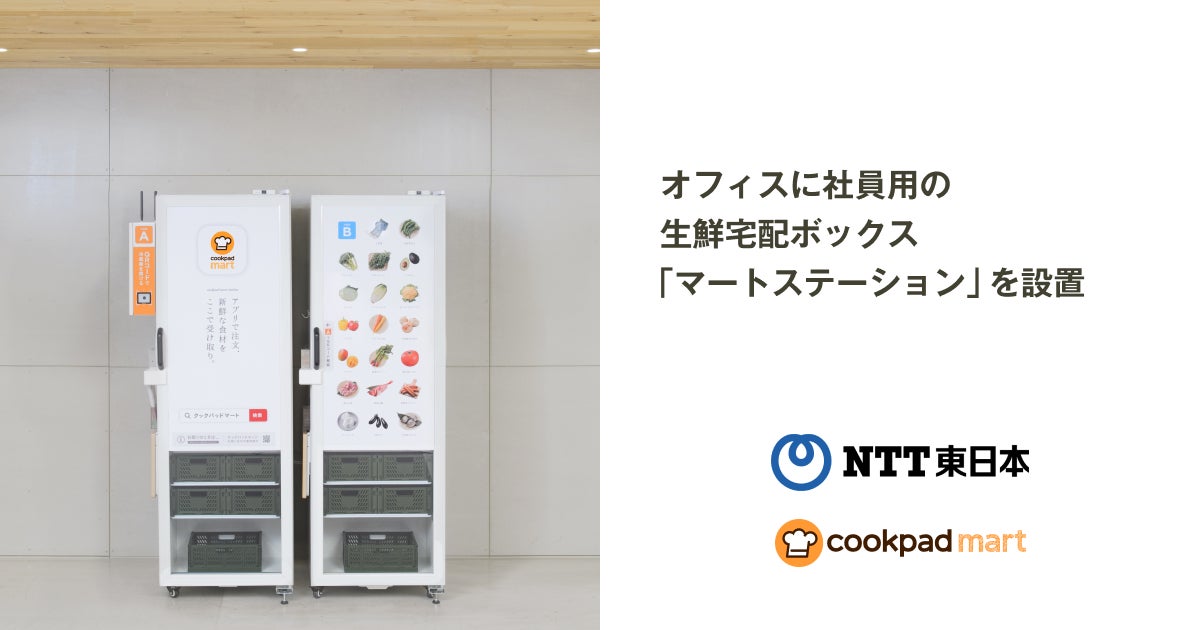 クックパッド株式会社は、東日本電信電話株式会社 神奈川事業部(以下「NTT東日本 神奈川事業部」)と連携し、生鮮食品EC「クックパッドマート」で注文した商品を送料無料で受け取ることができる生鮮宅配ボックス「マートステーション」を、NTT東日本 神奈川事業部のオフィス(神奈川県横浜市)に設置しました。
