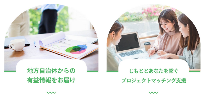 「自治体と共に地方から日本をおもしろく」をミッションとして掲げ、地域おこしの一環として、地元を離れて培ったスキルと地域課題の解決で再結合するマッチングサービス「じもとしごと」を運営しております。