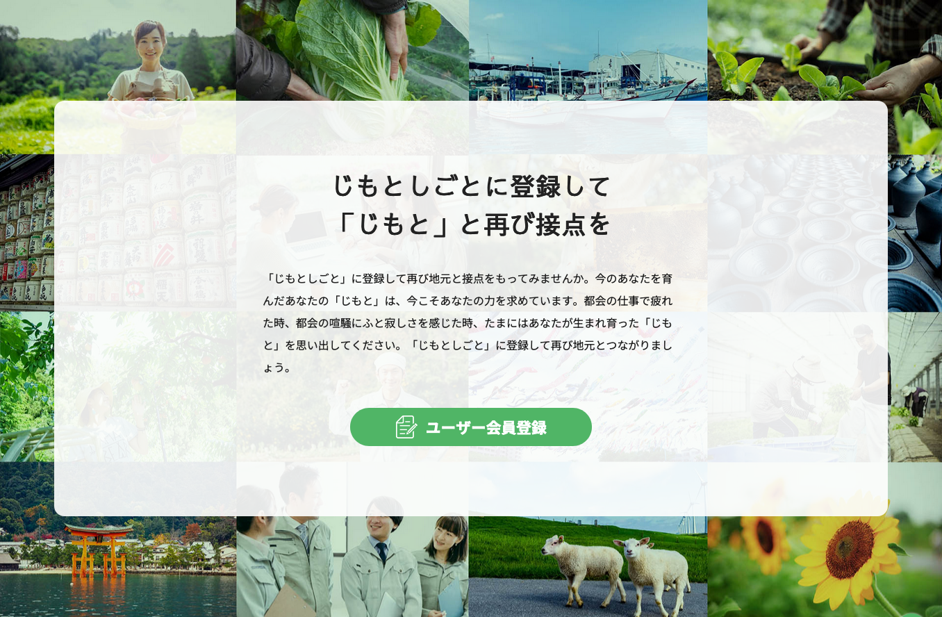 「じもとしごと」は、一度地元を離れてしまった方が、再び地元と接点を持つことができるサービスです。
