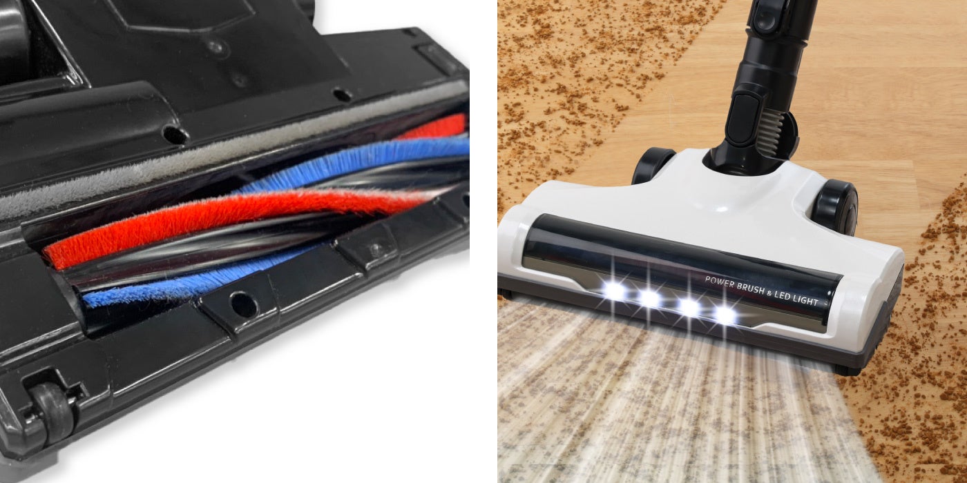 ■パワーブラシでパワフル吸引、LEDライト付きでゴミを見逃さない