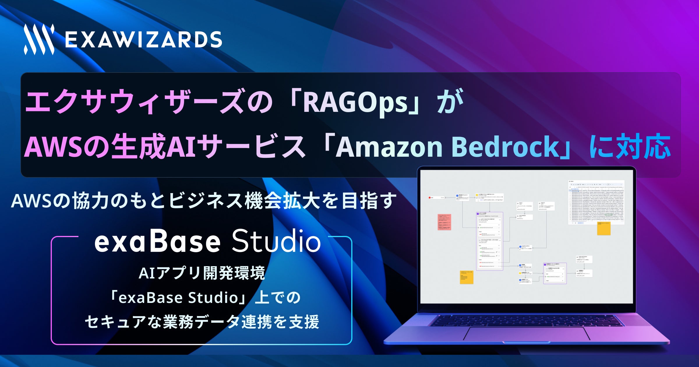 エクサウィザーズの「RAGOps」が、 AWSの生成AIサービス「Amazon Bedrock」に対応