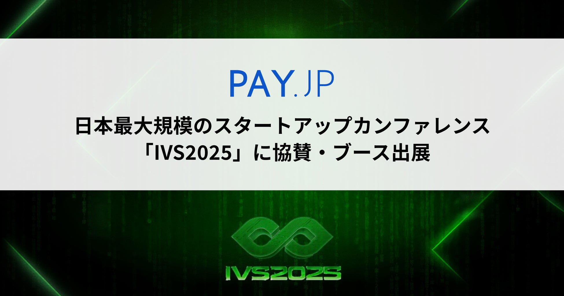 オンライン決済サービス「PAY.JP」、日本最大規模のスタートアップカンファレンス「IVS2025」に協賛・ブース出展