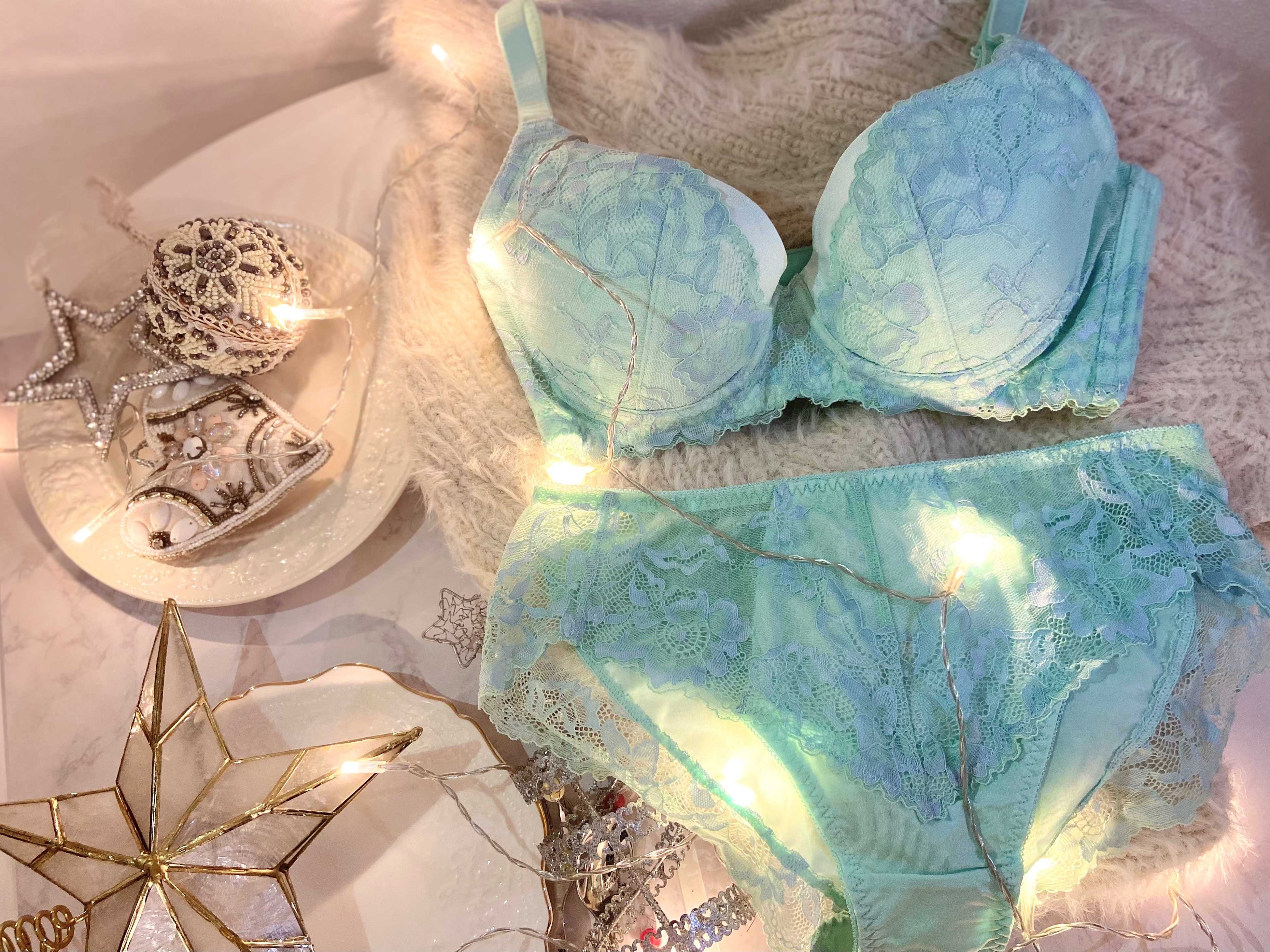 青寄りのライトグリーンの生地に、水色の刺繍レースが入った爽やかなミントが仲間入り。お気に入りのカラーを下着に取り入れて、春先取りのファッションを楽しんでください。