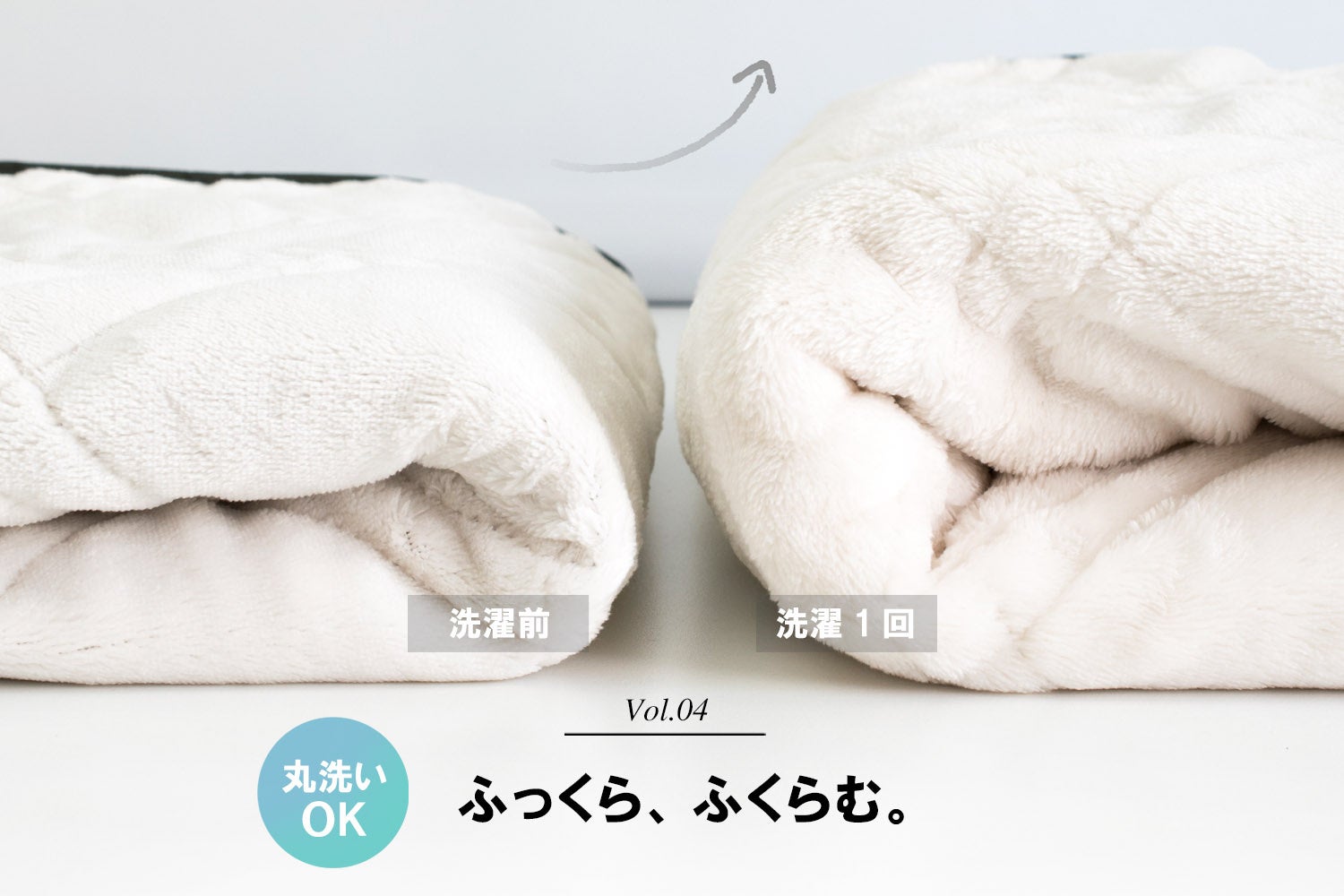 洗濯をすることで中綿が空気を含んでボリュームがアップします。