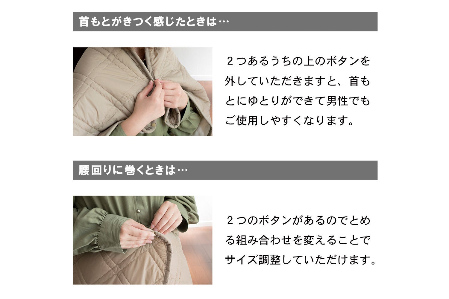 スナップボタン付きですので、シーンによって自由自在に使い分けいただけます。