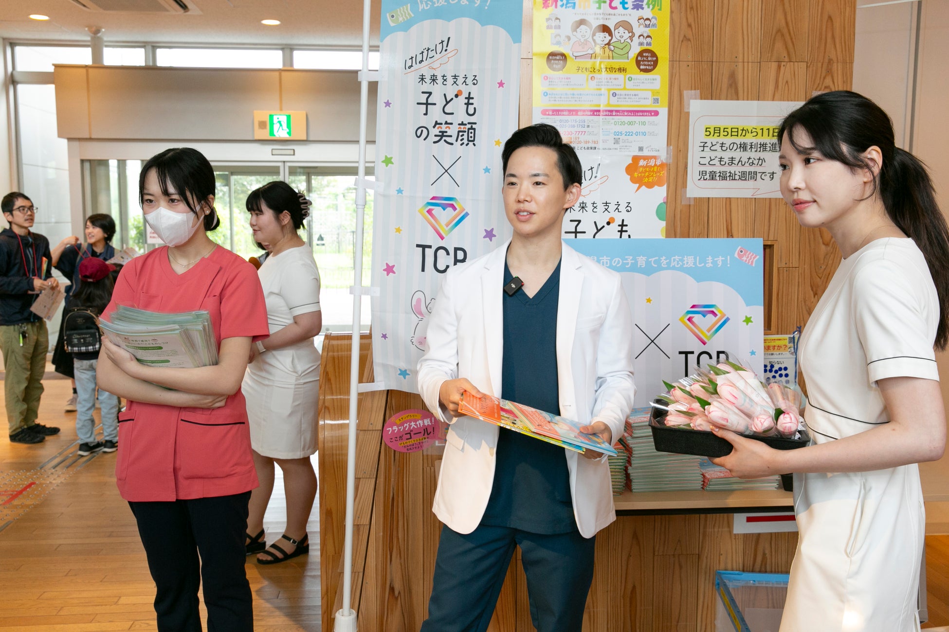 ⽇本全国に105院(2025年5⽉現在)を展開する美容クリニック TCB東京中央美容外科(理事長:寺西 宏王、以下「TCB」)は、新潟市への寄付を記念して5月5日(月・祝)に新潟市こども創造センターにて絵本とチューリップの花を模したソープフラワーを無料配布いたしました。