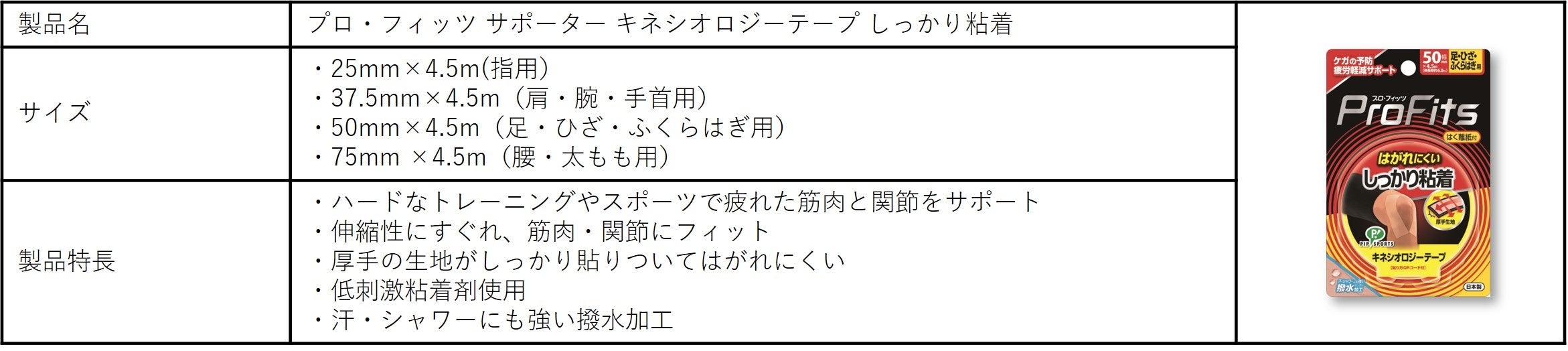 本大会では参加特典として「プロ・フィッツ スポーツテックタイツ」を参加者の皆様にプレゼント。大会期間前にお手元に届くので、大会期間中にお試しいただくことが可能です。骨盤まわりと太ももに施されたテーピングサポート機能で、パフォーマンスの土台となる下半身を補助し、初心者ランナーからベテランランナーにもおすすめのコンプレッションウェアです。また各種目で結果順位が1位~100位以内で10の倍数に相当する順位に該当する方には、トビ賞として「プロ・フィッツ キネシオロジーテープ しっかり粘着 幅50mm」もプレゼントいたします。