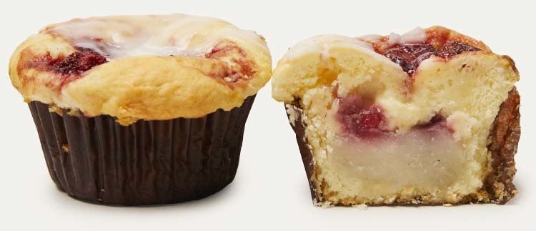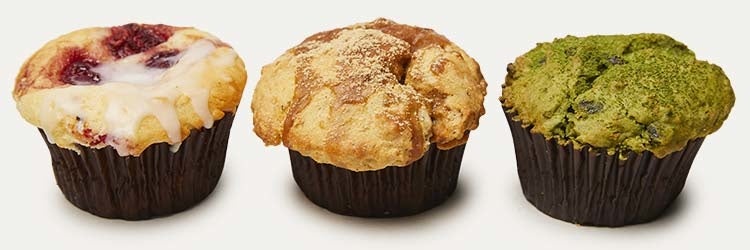 練乳を入れた生地に白あん、いちご、白玉を入れて焼き上げました。中の白玉のもちもち食感と、いちごの酸味、白あんでいちご大福のようなマフィンになっています。