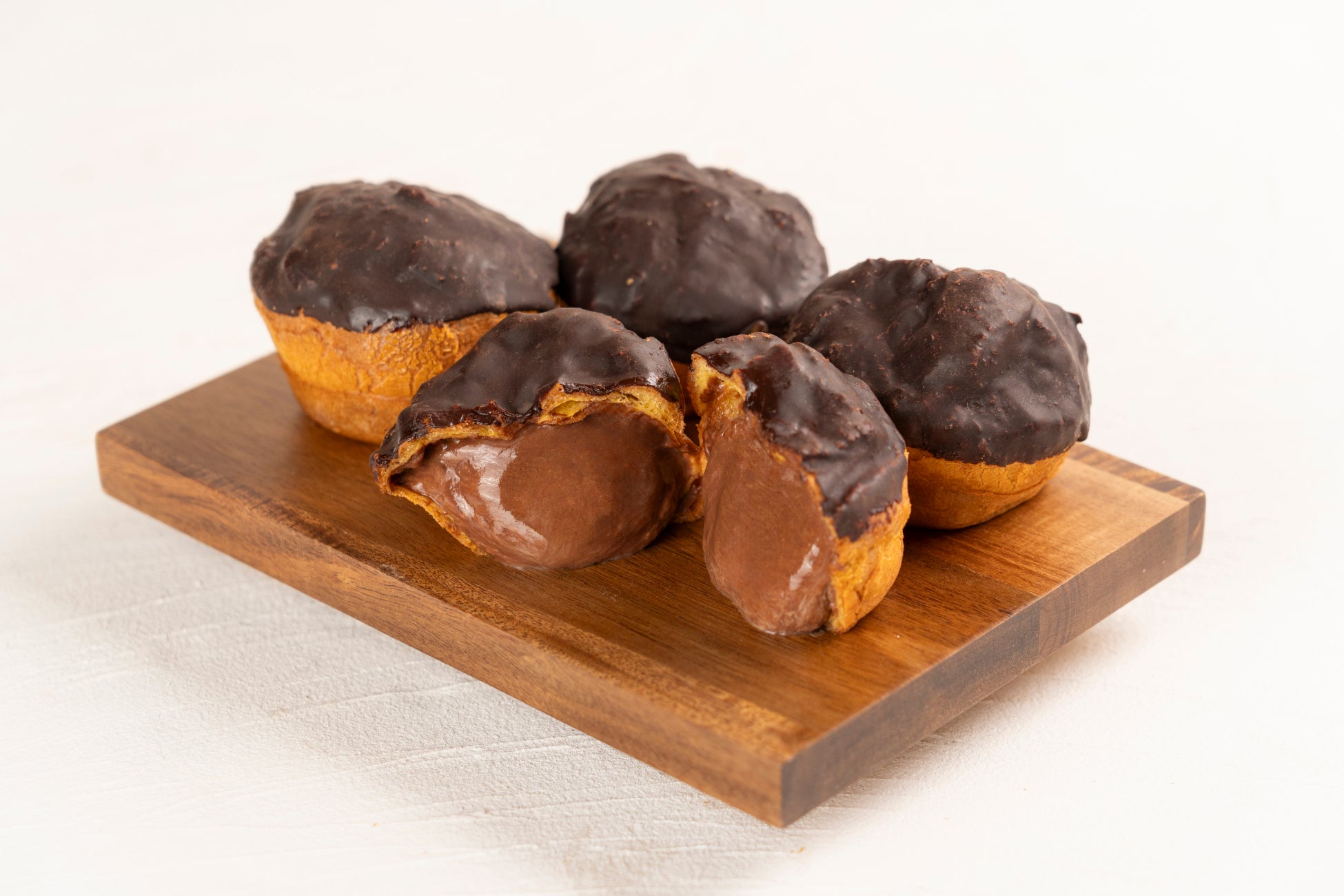 有機牛乳や平飼い卵をベースとしたカスタードクリームに、カカオマスと北海道産純生クリームを合わせた"なめらかでコク深い"クリームを、シュー生地にたっぷり詰め込みました。