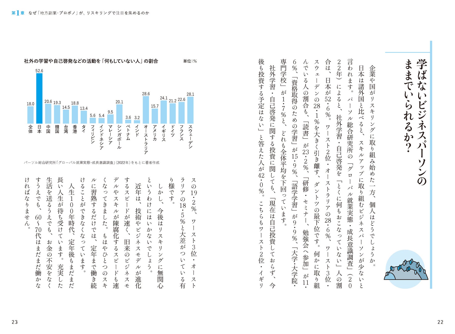 本書は、この「地方副業・プロボノ」を通じて学び直しをする、という今までにないリスキリングの新モデル=「地方副業リスキリング」を提案する一冊となります。