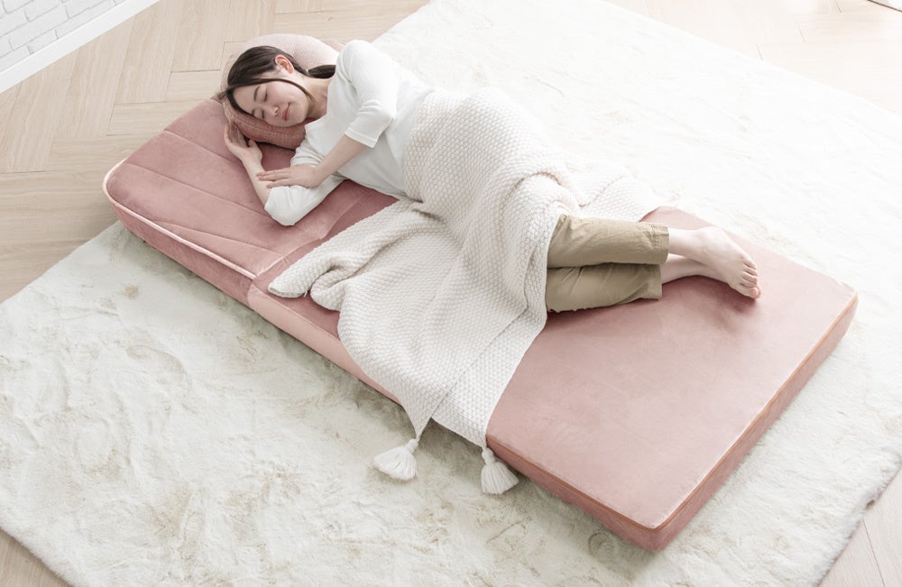 本製品は、コンパクトなサイズ感と大人可愛いデザインが特徴で、一人暮らしの女性のお部屋などにマッチした3wayソファベッドになります。また、くつろぎのシーンに合わせて3つのスタイルに簡単に切り替えることができます。