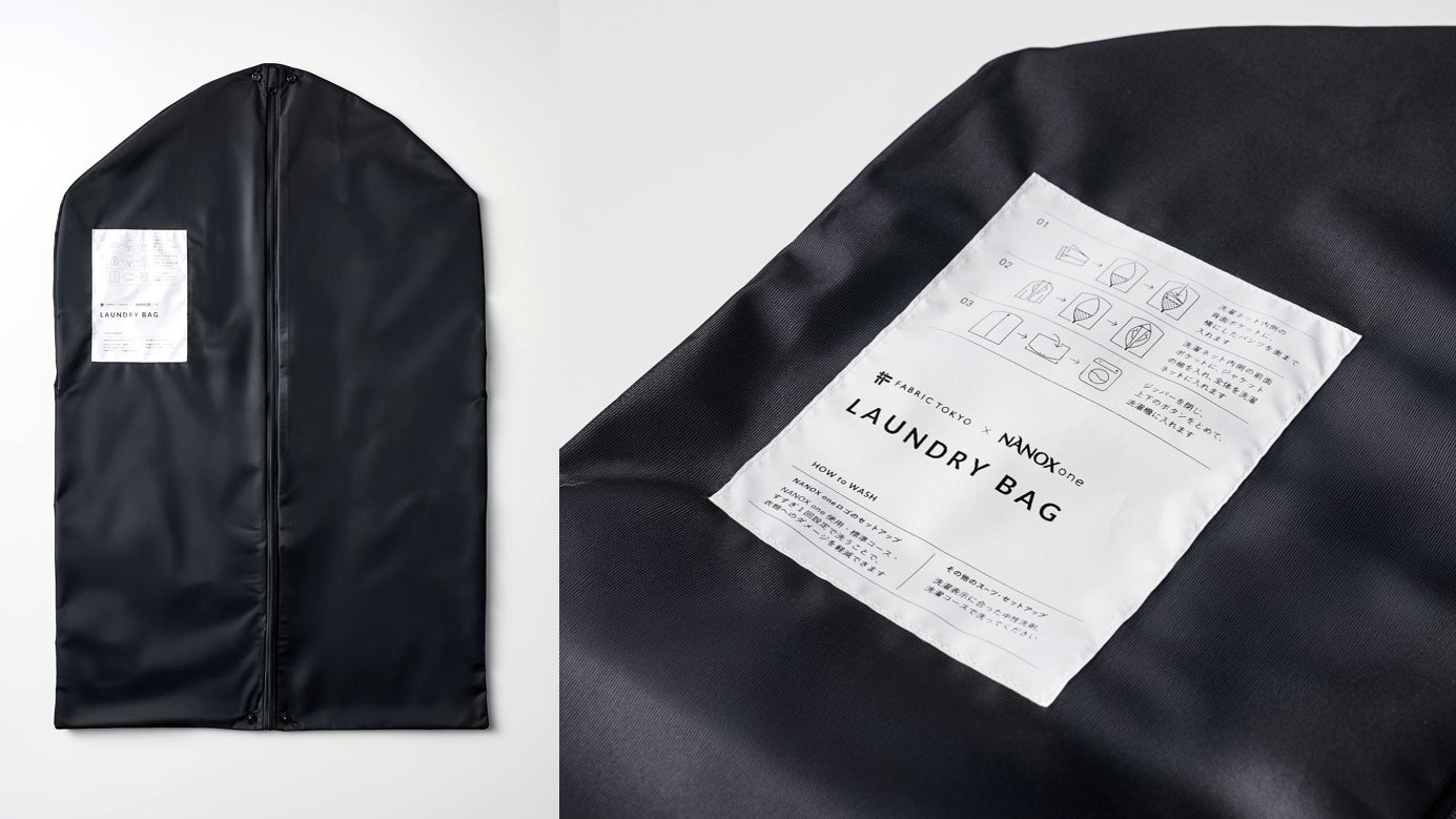 そしてスーツと同様に何度も試作を繰り返したオリジナルの洗濯ネットです。洗濯ネットの使い方、お洗濯の手順がひと目でわかるガイドをネットに付けました。これからは新生活のタイミングで、スーツやジャケットを新調する機会が多くなります。『NANOX × FABRIC TOKYO SPEED WASH ONE』で、常に清潔で信頼感のあるスタイルで日々のお仕事に向かっていただければと思います。(土山氏)