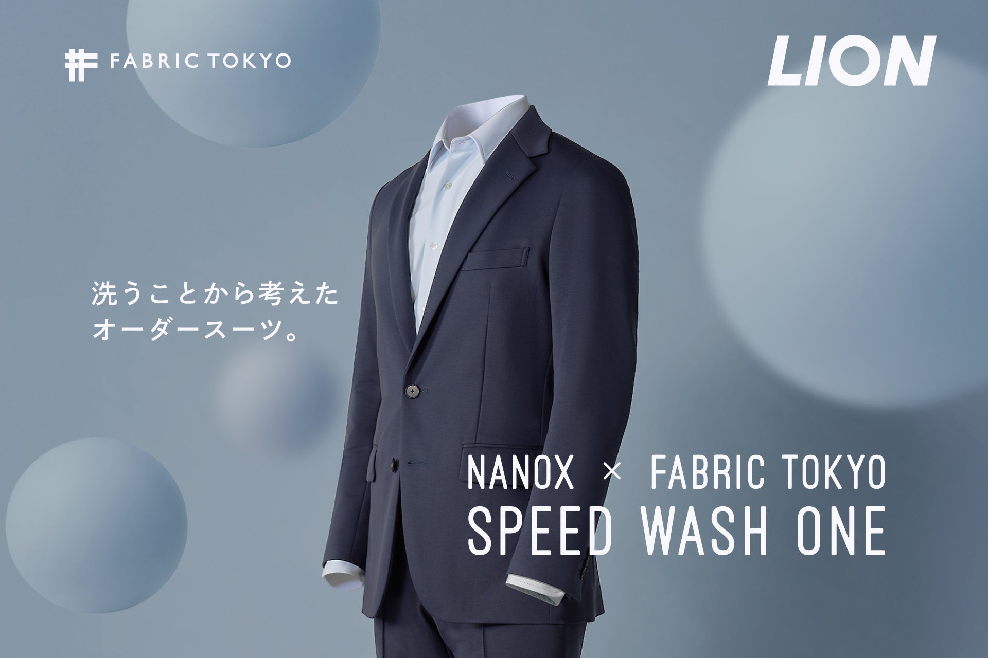 ライオン株式会社と株式会社FABRIC TOKYOがコラボスーツを発売~両社代表が共同開発のオーダースーツを発表『NANOX × FABRIC TOKYO SPEED WASH ONE』~