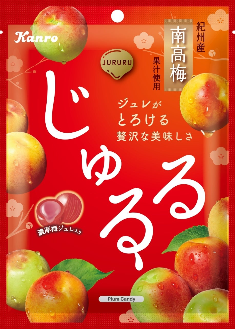 梅の花は1月から開花しはじめ、それに合わせ梅フレーバーは旬を迎えます。「この梅フレーバーシーズンにこそ、まるで熟した梅を食べているような濃厚なおいしさで、旬の梅をお楽しみいただきたい」という想いから誕生したキャンディが「じゅるる南高梅」です。