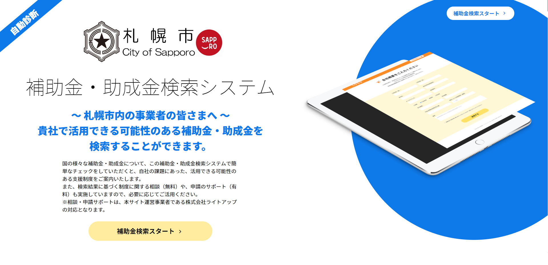 ライトアップ、札幌市へ「Jシステム(補助金・助成金自動診断システム)」を提供開始。市内事業者に向けた支援体制の強化を共同実施