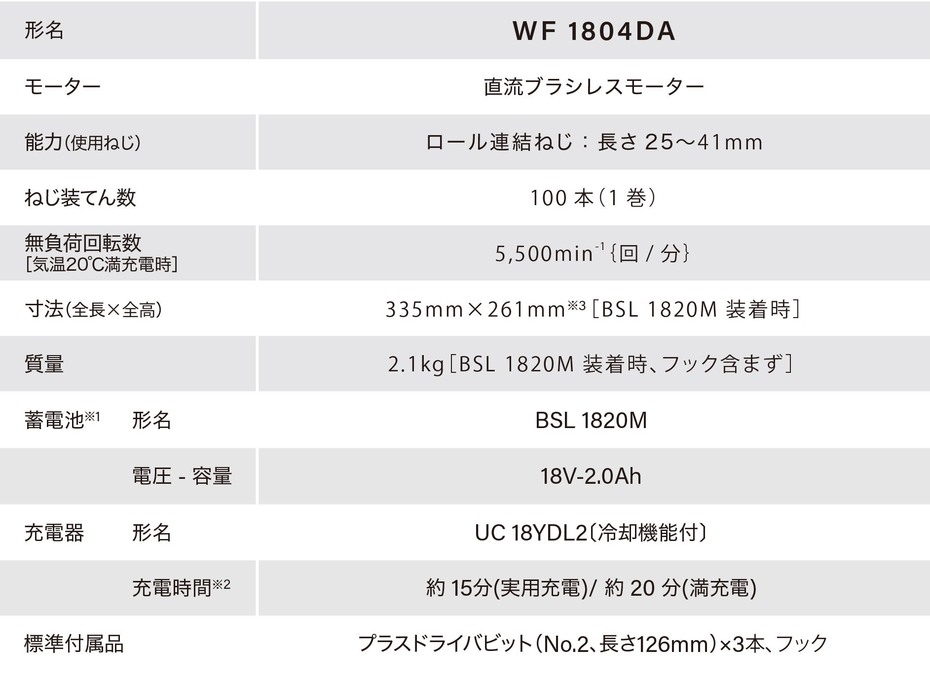 名称 :コードレス連結ねじドライバ WF1804DA 形