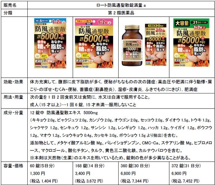 「余分な糖を出す」を新訴求に「ロート防風通聖散錠満量a」試しやすく、飲みやすく、続けやすい新仕様に進化!