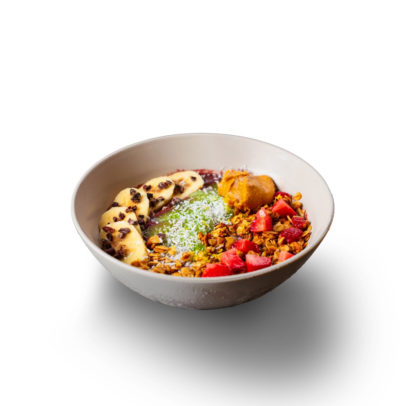人気商品がリニューアル。アサイースムージーに、バナナ・キウイ・イチゴなどのみずみずしいフルーツを彩りよくトッピング。朝のひと皿や軽食にもぴったりな、華やかさと素材の調和が魅力の1品。