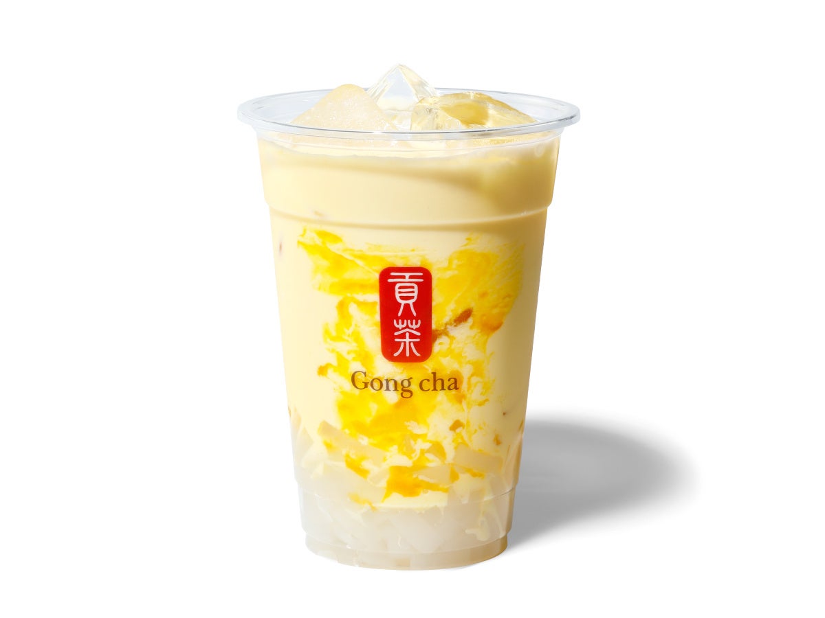 マンゴーの芳醇な香りが広がるミルクティー。高級台湾茶として知られ、フルーツと相性の良い阿里山ウーロンティーをベースに、果肉入りマンゴーソースとナタデココを合わせました。ナタデココがマンゴーの濃厚でみずみずしい甘さを引き立てるとともに、コリコリとした食感も楽しめます。