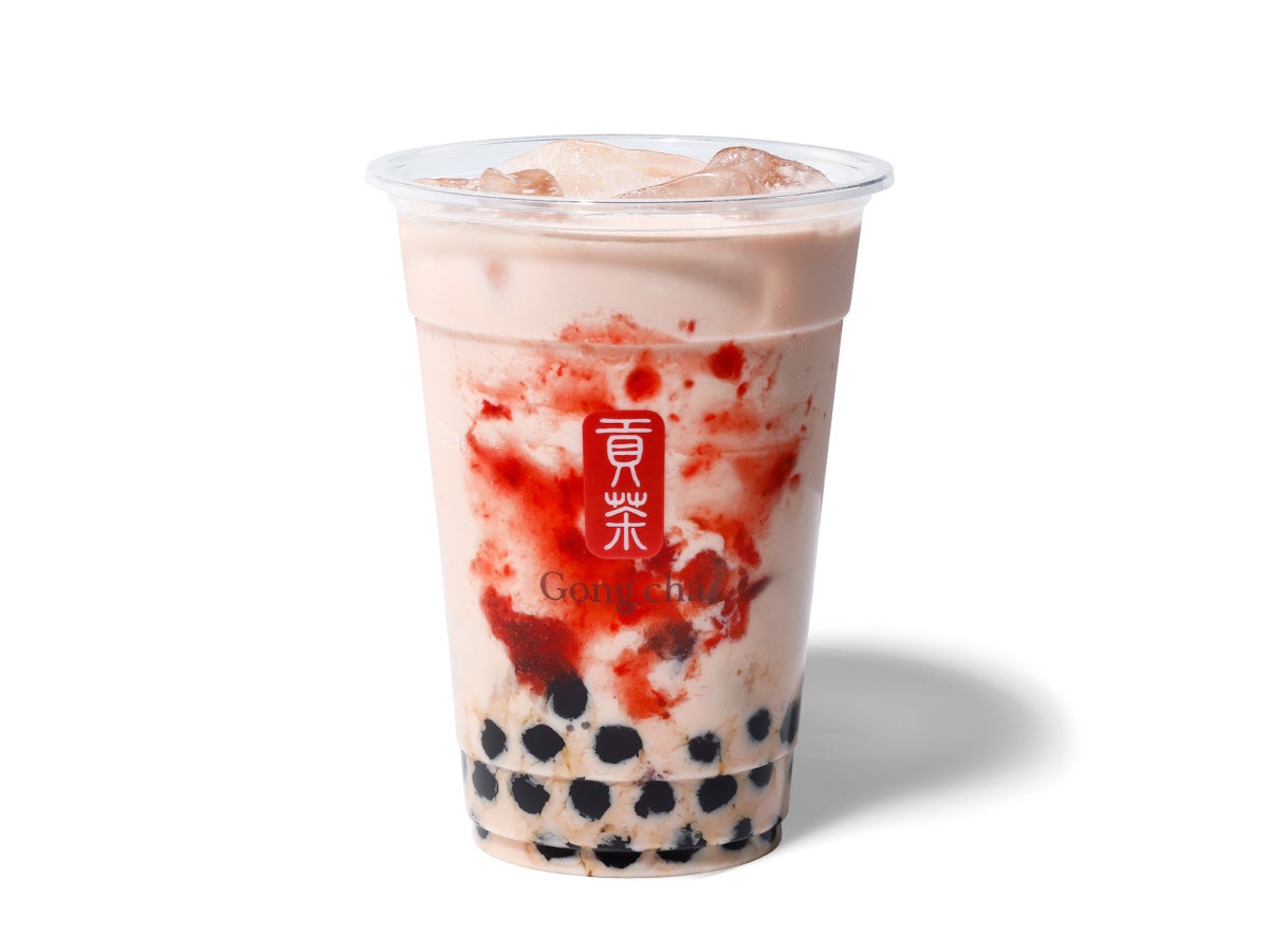 華やかな香りと深い味わいが楽しめるアールグレイティーに、風味豊かなつぶつぶの果肉入りストロベリーソースを合わせ、ミルクティーに仕上げました。もちもちでコクのあるパール(タピオカ)をトッピングすることで、食べ応えと満足感のあるデザートのような1杯になっています。