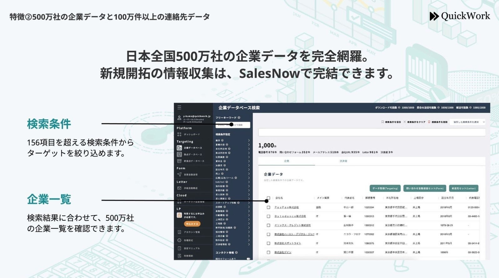 -日本全国500万社以上の企業データを基盤に営業の効率化を支援する「SalesNow」 https://top.salesnow.jp/