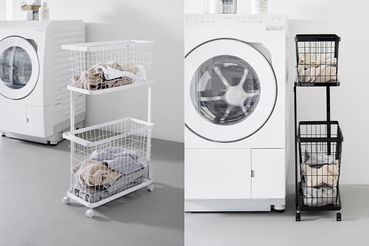 M・Lサイズのワイヤーバスケットを収納できるランドリーワゴンセットです。