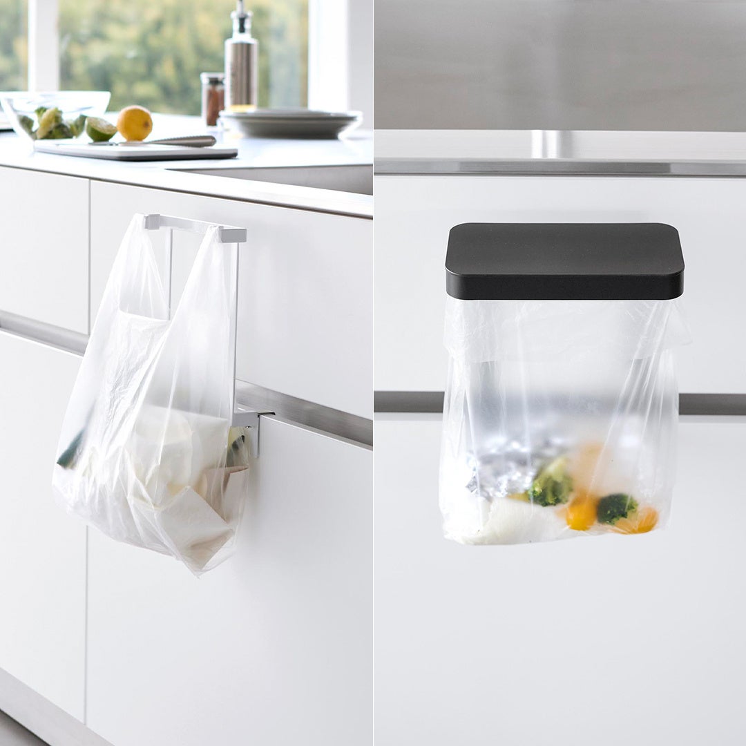 ポリ袋を引っ掛けるだけで簡易ゴミ箱として使えるレジ袋ハンガーです。