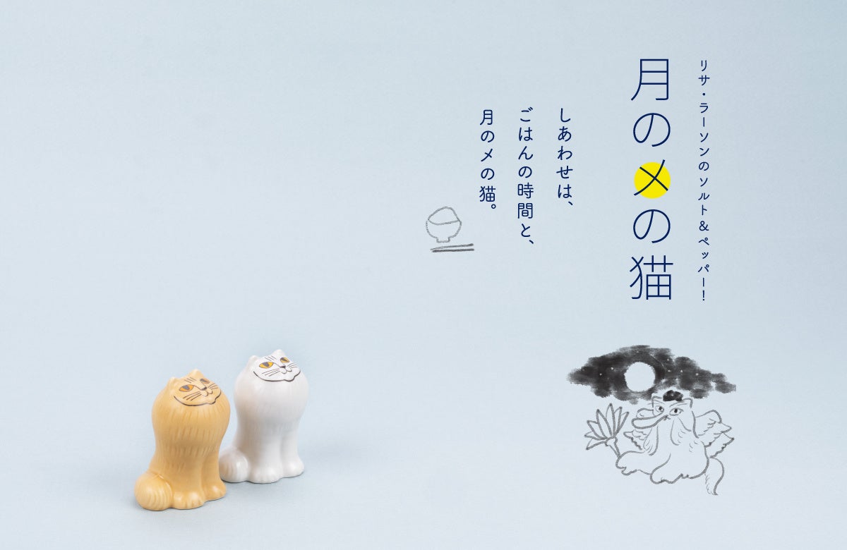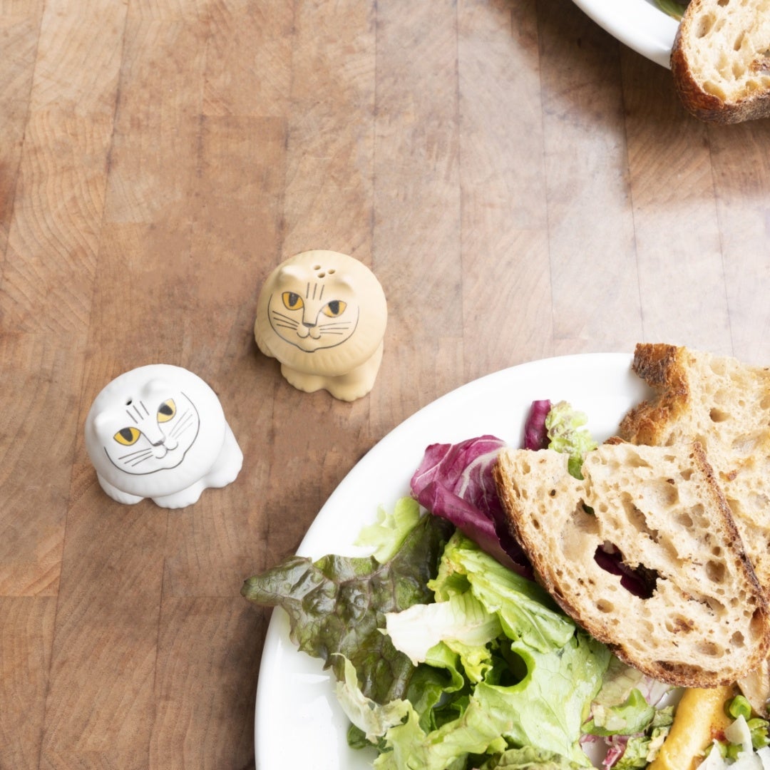 料理にハッピーを振りかける、リサ・ラーソンのソルト&ペッパー。しあわせのフルコースには、「月のメの猫」が隠し味です!