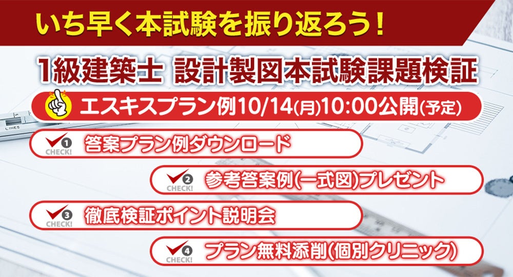 2024年11月上旬に「2024年度(令和6年度)1級建築士 設計製図本試験 参考解答例(一式図)」を発送します!
