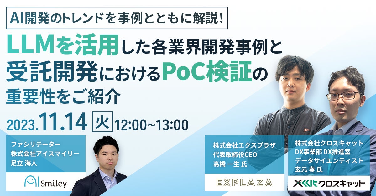 【11/14開催】AI開発のトレンドを事例とともに解説!~LLMを活用した各業界開発事例と受託開発におけるPoC検証の重要性をご紹介〜