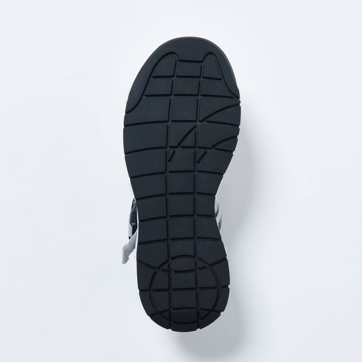 アッパーにはクリア素材の窓を採用し、スニーカーの中のソックスが見えるギミックを追加。