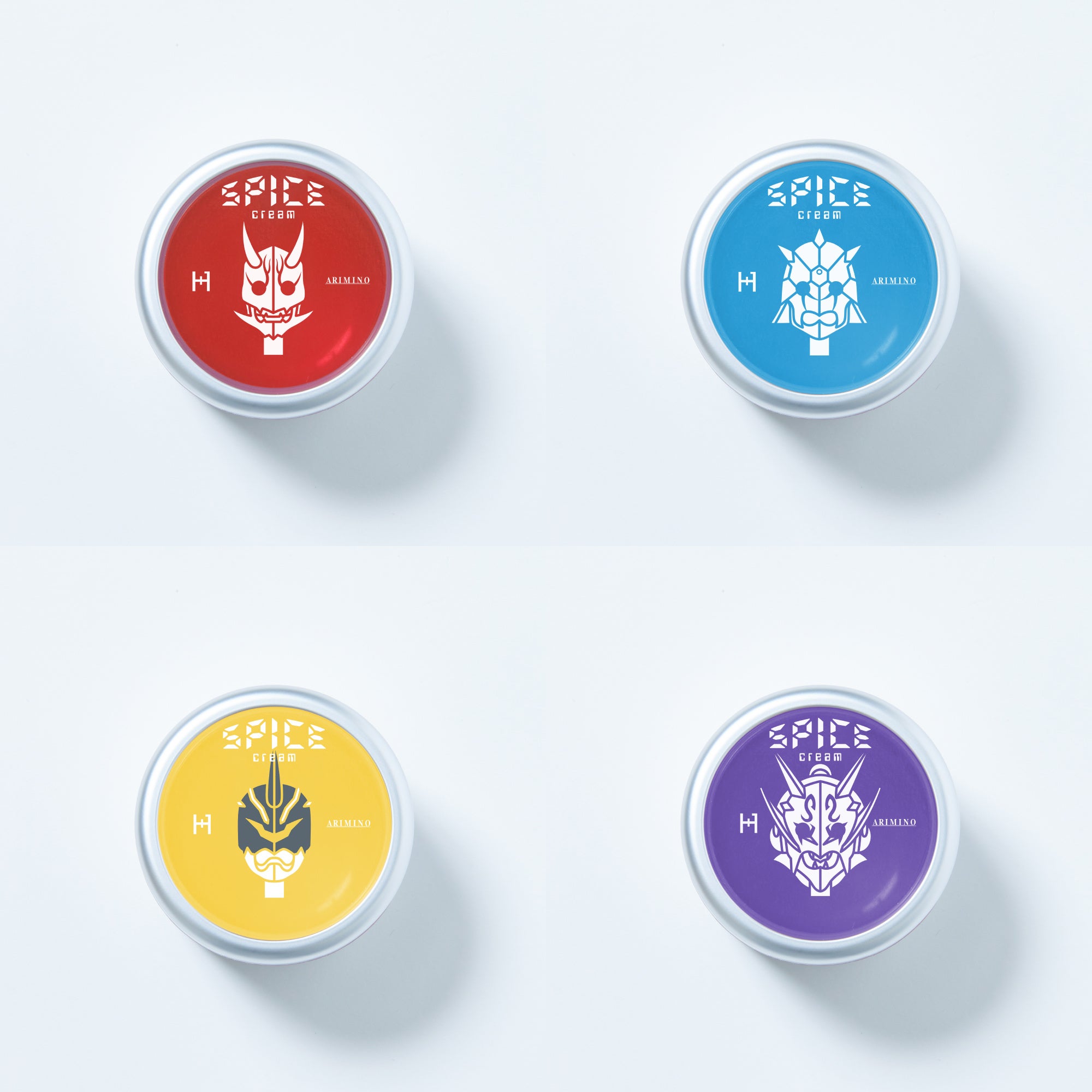 有名なスパイスクリームのアイコンをオマージュしてデザインした、オリジナルグラフィックのパッケージとボックス。ボックスを開けるとそれぞれのイマジンの決め台詞が出てくる仕様で、HENSHINに遊びを含みます。