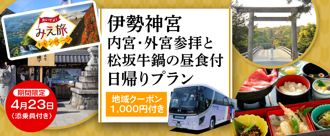 全国旅行支援「おいでよ!みえ旅キャンペーン」を適用可能 お1人様に付き1,000円 地域クーポン付