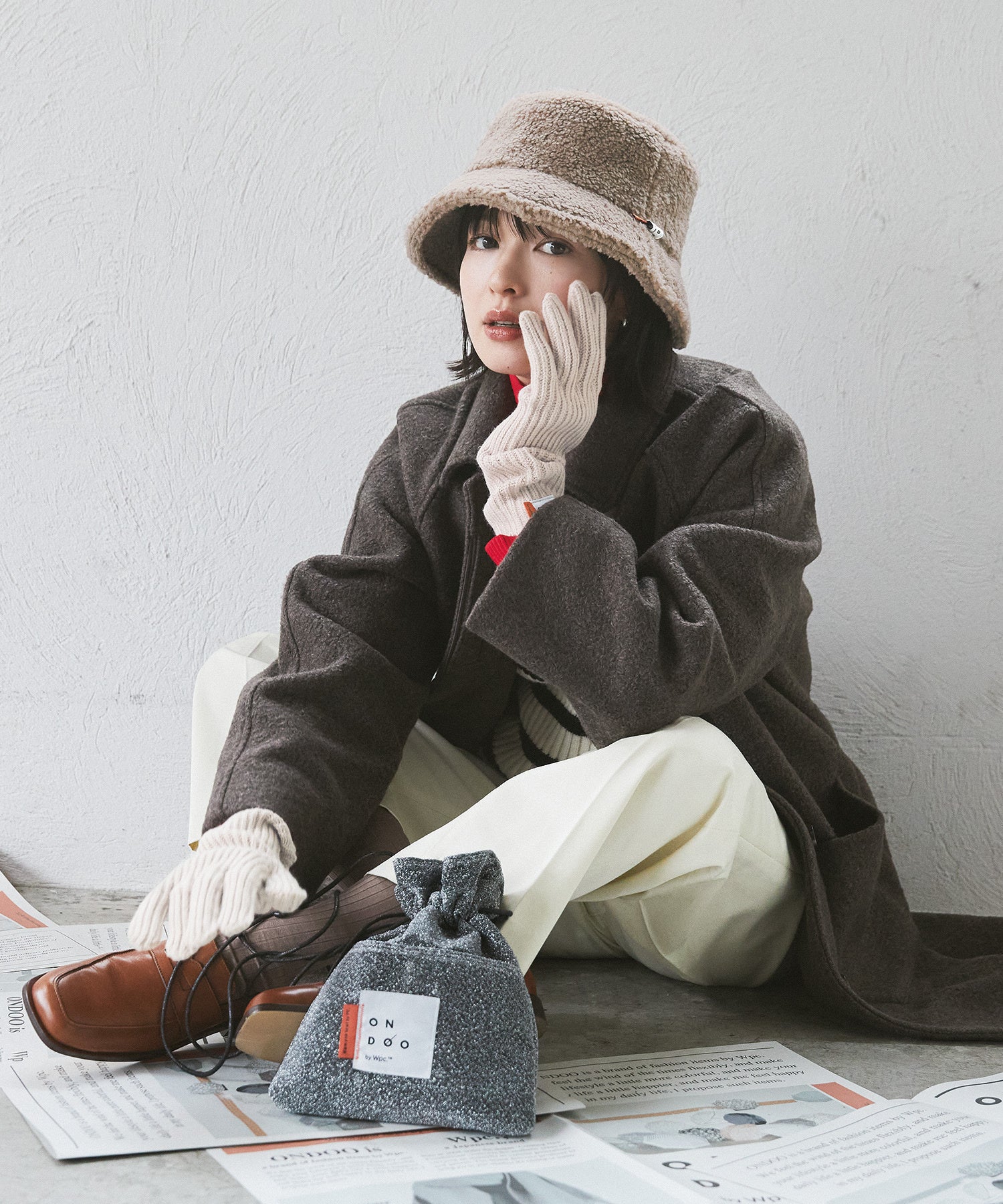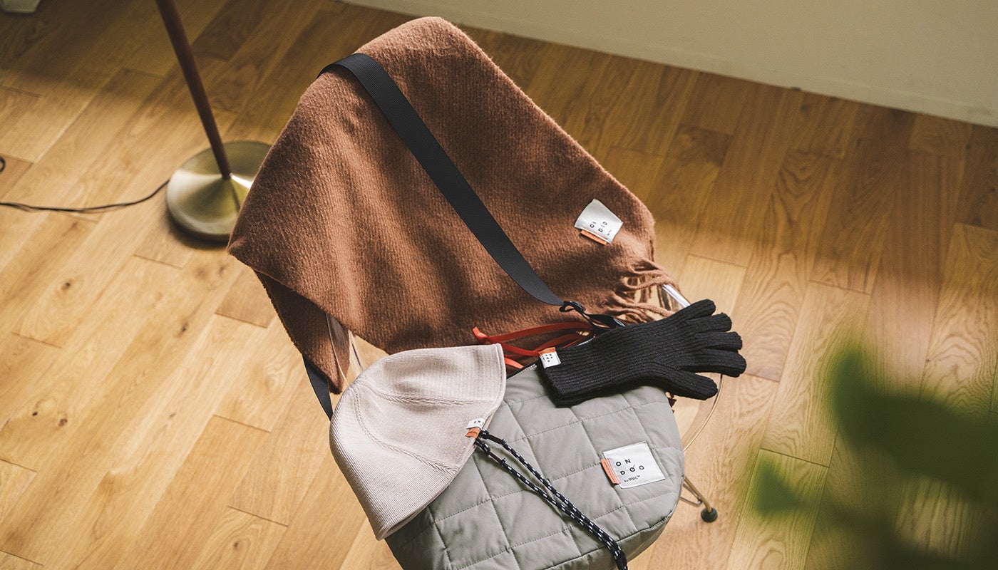 様々なコーディネートに馴染むベーシックカラーのマフラーやニットグローブ、ハットをはじめ、華やかさをプラスするラメ入りの生地を使ったバッグといったファッションアイテムやおうちで使えるルームブーツなど、”今の私の気分を上げてくれる”計13点が登場。また、こころの「おんど」が上がっていく様子を表したブランドロゴや各アイテムのアクセントになるエッジの効いたオレンジ色のブランドネームもポイントです。