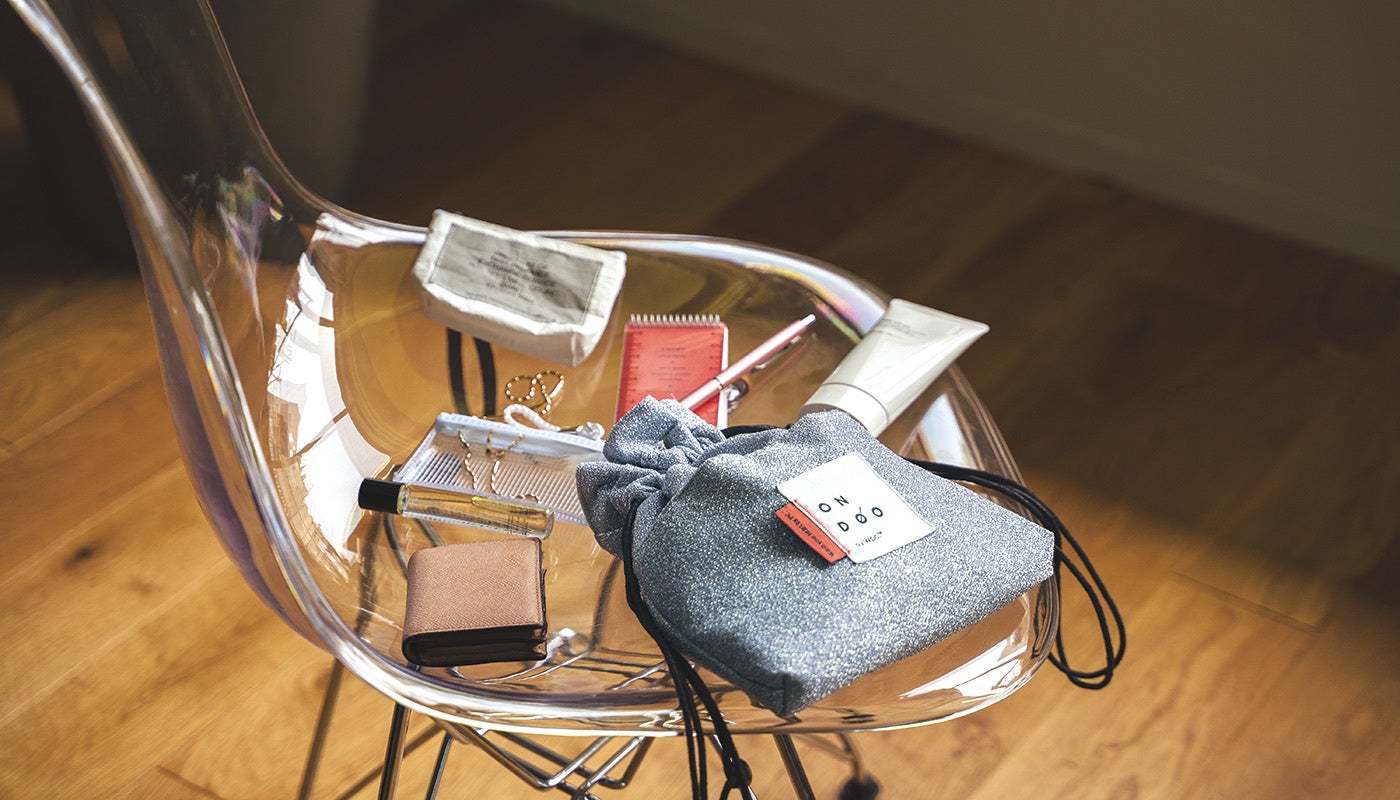 メタリックカラーが印象的な巾着バッグはトートバッグとショルダーバッグになる2way仕様で、コンパクトでありながらも、必要最低限の荷物がしっかり収まるサイズ感です。