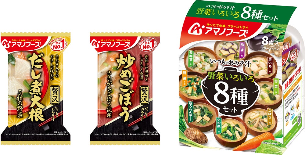 『いつものおみそ汁贅沢 だし煮大根/炒めごぼう』『いつものおみそ汁 野菜いろいろ8種セット』 3月4日発売