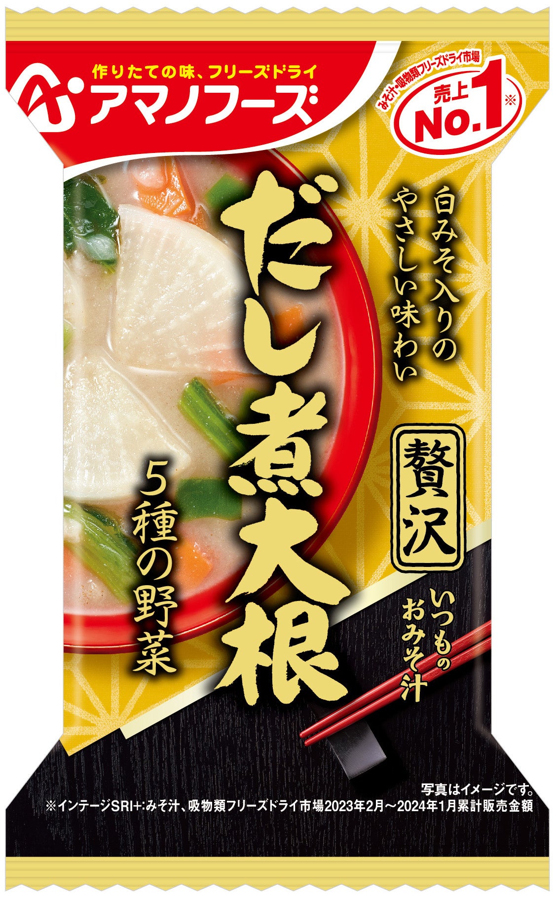 フリーズドライみそ汁は、お湯を注ぐだけで手軽に本格的な味わいと具材の香りや食感が楽しめる商品です。おみそ汁1杯から調理ができ、時短ニーズの高まりや個食化の進行などを背景に近年人気を集めています。「いつものおみそ汁」シリーズは、具材にあわせて最も相性の良い“みそ”と“だし”を選び、こだわって作った、毎日食べたくなるおみそ汁をコンセプトに2014年から展開している「アマノフーズ」の主力商品です。