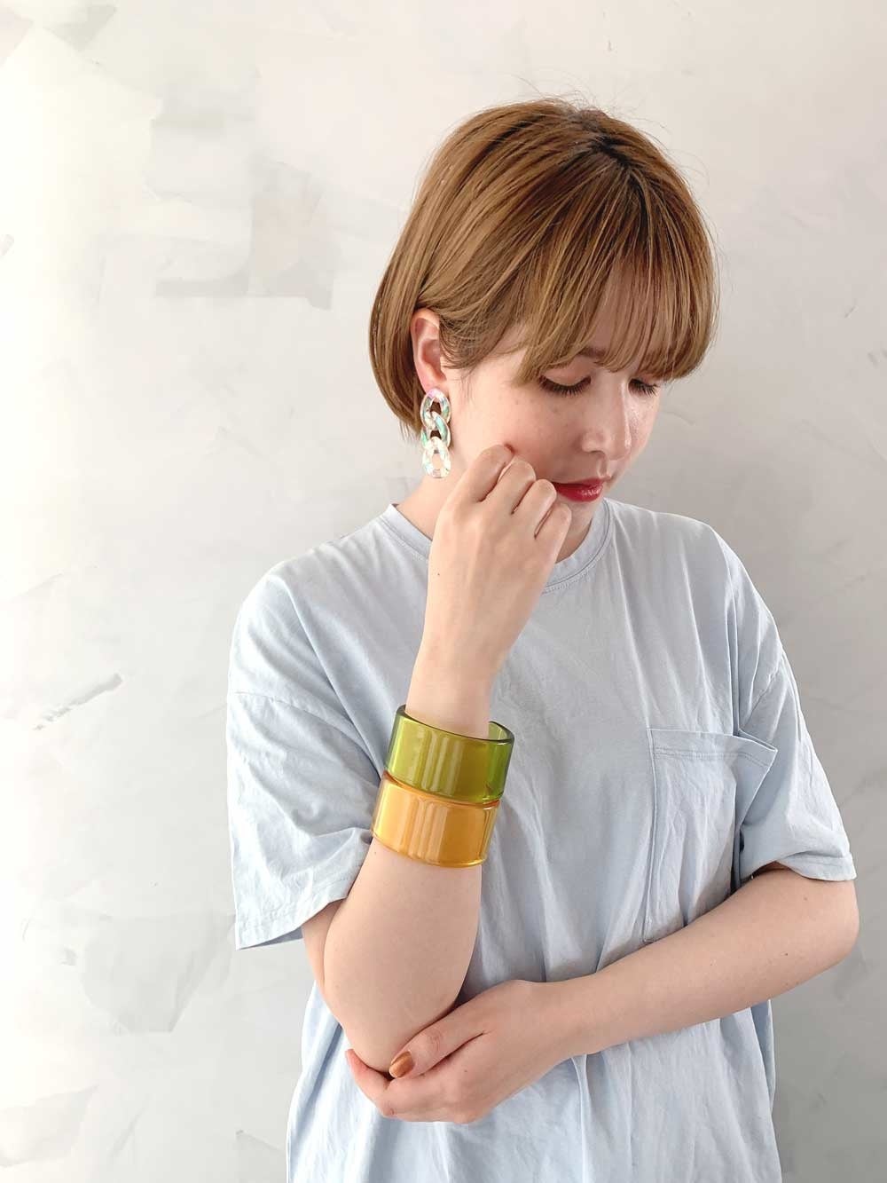 天然素材を使用したアクセサリーはコーディネートに夏らしい雰囲気をプラスしてくれます。ひとつひとつ微妙に色味や表情が変わるのがポイントです。