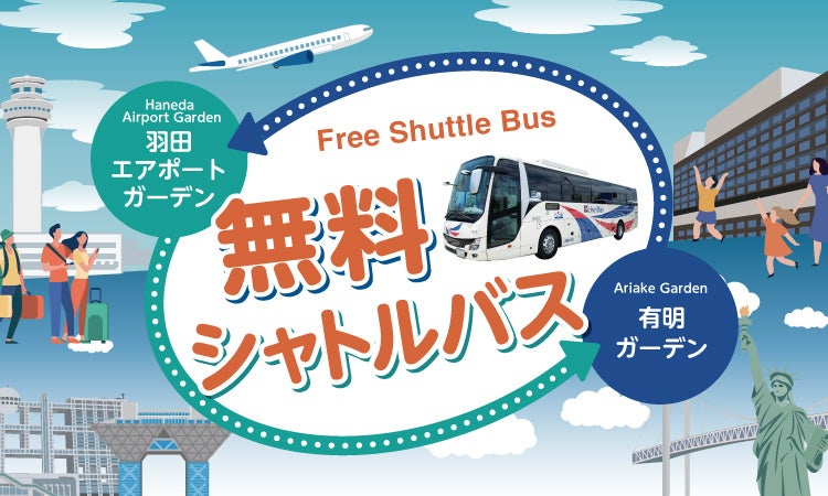 有明ガーデンと羽田エアポートガーデンを結ぶ無料シャトルバスも運行中!