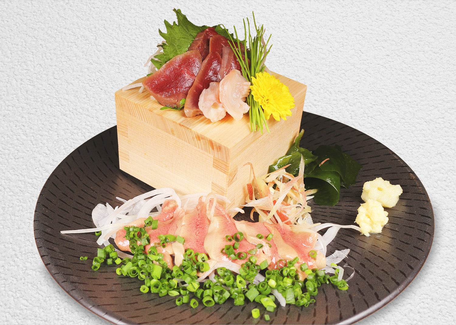 対馬クロマグロの肝・ホシ(心臓)・ホシ元(心臓の付け根)の3種。連日早い時間で売り切れになる当店1の人気メニューです。