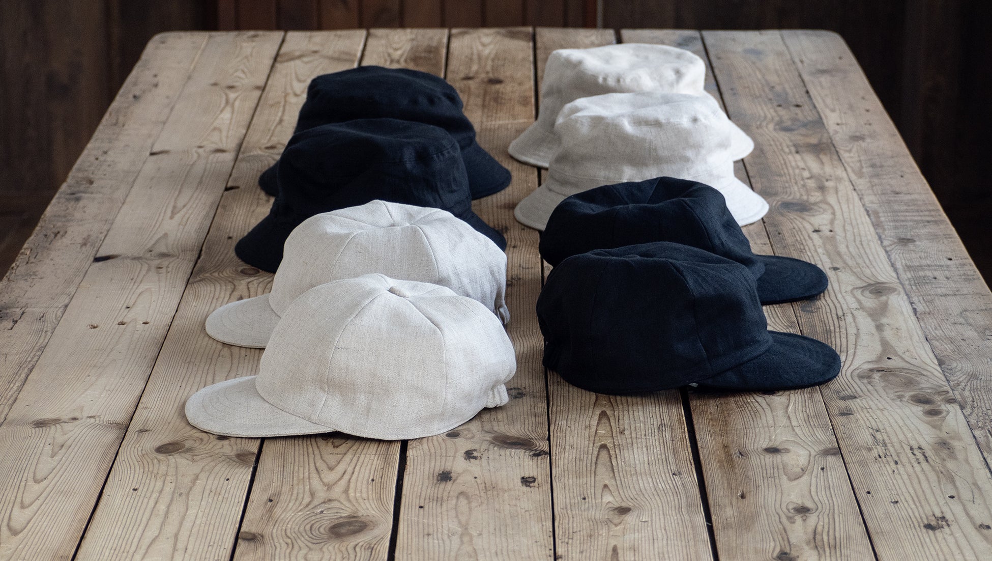 程よく力の抜けた、柔らかく落ち着いた雰囲気を引き出す。天然素材リネンで作るベースボールキャップとバケットハット発売します。