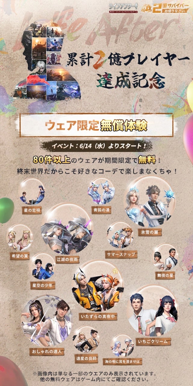 「2億サバイバー、お帰りなさい」! 終末オープンワールドサバイバルゲーム「ライフアフター」、グローバル累計ユーザー数2億名突破を記念するイベント情報を大公開!豪華ボーナスイベントが連続で1ヶ月間開催!